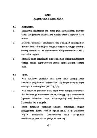 | Uncontrolled Keywords: | Klindamisin, Asam galat, Staphylococcus aureus ATCC 6538, Biofilm, Antibiofilm. |