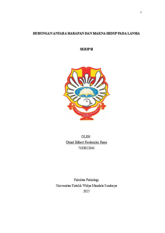 Ranu, Otniel Edbert Fredericko (2025) Hubungan antara harapan dan makna hidup pada lansia. Undergraduate thesis, Widya Mandala Surabaya Catholic University.