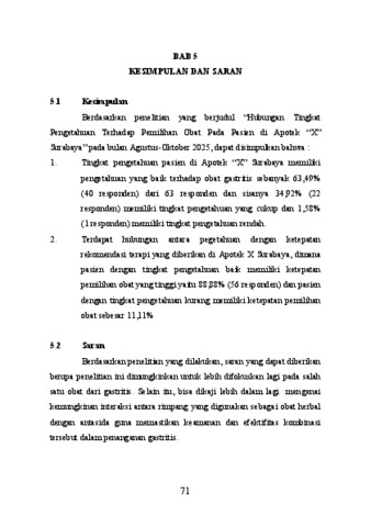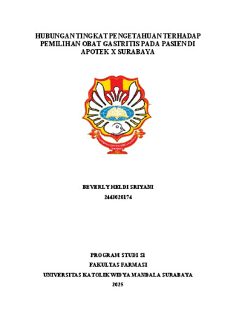Sriyani, Beverly Heldi (2025) Hubungan tingkat pengetahuan terhadap pemilihan obat gastritis pada pasien di Apotek X Surabaya. Undergraduate thesis, Widya Mandala Surabaya Catholic University.
