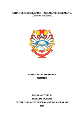 Mahendra, Defano Putra (2025) Karakterisasi lendir tanaman biji kemangi (Ocimum Basilicum). Undergraduate thesis, Widya Mandala Surabaya Catholic University.