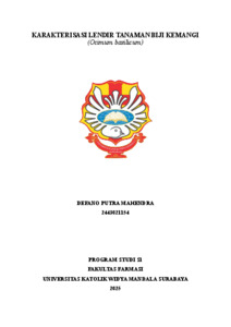 | Uncontrolled Keywords: | Biji Kemangi, Karakterisasi, Polisakarida, Eksipien Farmasi |