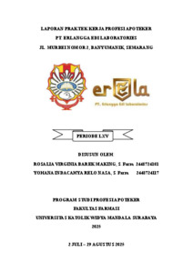 Making, Rosalia Virginia Barek and Nasa, Yohana Indacahya Relo (2025) Laporan praktek kerja profesi Apoteker PT. Erlangga Edi Laboratories JL. Murbei Nomor 2, Banyumanik, Semarang 2 Juli-29 Agustus 2025. Project Report (PKL, PKIPP, Magang D3, Praktik Kerja Profesi Apoteker, Profesi Guru, Profesi Ners dan Profesi Insiyur). Faculty of Pharmacy, Surabaya, Indonesia. (Submitted)