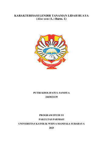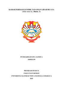 Sanisya, Putri Kholifatul (2025) Karakterisasi lendir tanaman lidah buaya (Aloe vera (L.) Burm. f.). Undergraduate thesis, Widya Mandala Surabaya Catholic University.