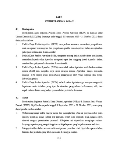 Surman, Anggraeni Clarita Jelita Putri, Bhagaskara, Benedictus Theoderix, Anggle, Chelvina, Putri, Claritta Angelina Wiyanto, Partana, Fransiskus Regis, Gerrits, Frisca Monika, Amelya, Inca, Chang, Jessie Valerine, Rosalina, Nana, Kusumawati, Ni Made, Tondo, Printy Angelina Ndapa, Jap, Theresa Maria, Utami, Widia Tri, Agustinah, Yeni and Ramadhani, Yusrin Rahmat (2026) Laporan Praktik Kerja Profesi Apoteker di RSUD Haji Provinsi Jawa Timur Jalan Manyar Kertoadi, Klampis Ngasem, Surabaya 08 September - 31 Oktober 2025. Project Report (PKL, PKIPP, Magang D3, Praktik Kerja Profesi Apoteker, Profesi Guru, Profesi Ners dan Profesi Insiyur). Faculty of Pharmacy, Surabaya, Indonesia. (Submitted)