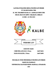 Rosalina, Nana and Anggle, Chelvina (2026) Laporan Praktik Kerja Profesi Apoteker di PT. Kalbe Farma Tbk. Jl. MH. Thamrin Blok A3-1, Kawasan Industri Delta Silicon Lippo Cikarang, Bekasi 26 Mei – 18 Juli 2025. Project Report (PKL, PKIPP, Magang D3, Praktik Kerja Profesi Apoteker, Profesi Guru, Profesi Ners dan Profesi Insiyur). Faculty of Pharmacy, Widya Mandala Surabaya Catholic University. (Submitted)