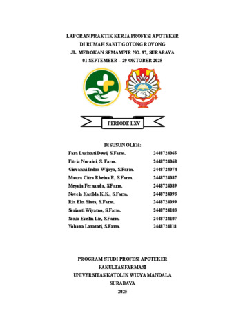 Dewi, Fara Lusianti, Nuraini, Fitria, Wijaya, Giovanni Indra, Prameswari, Maura Citra Rheina, Fernanda, Meyvia, Kur, Novela Kasilda Kurnia, Sinta, Ria Eka, Wiyatno, Serianti, Lie, Sonia Evelin and Larasati, Yohana (2025) Laporan Praktek Kerja Profesi Apoteker di Rumah Sakit Gotong Royong Jl. Medokan Semampir No. 97, Surabaya 01 September – 29 Oktober 2025. Project Report (PKL, PKIPP, Magang D3, Praktik Kerja Profesi Apoteker, Profesi Guru, Profesi Ners dan Profesi Insiyur). Widya Mandala Catholic University Surabaya, Surabaya. (Submitted)
