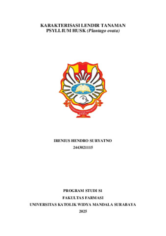 Suryatno, Irenius Hendro (2025) Karakterisasi lendir tanaman Psyllium Husk (Plantago Ovata). Undergraduate thesis, Universitas Katolik Widya Mandala Surabaya.