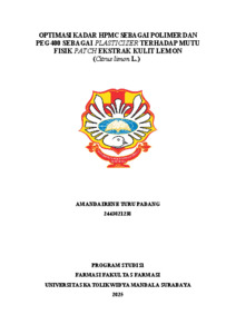 Padang, Amanda Irene Turu (2025) Optimasi kadar HPMC sebagai polimer dan PEG 400 sebagai plasticizer terhadap mutu fisik patch ekstrak kulit lemon (Citrus limon L.). Undergraduate thesis, Widya Mandala Surabaya Catholic University.