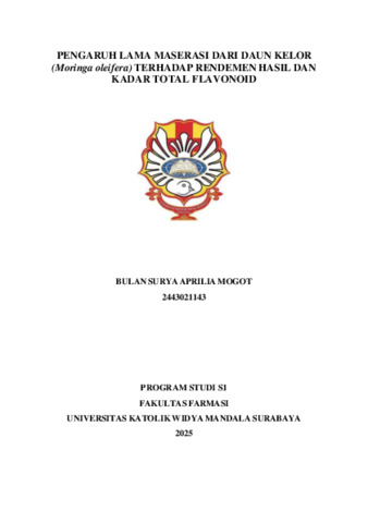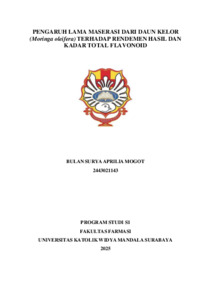 Mogot, Bulan Surya Aprilia (2025) Pengaruh lama maserasi dari daun kelor (moringa oleifera) terhadap rendemen hasil dan kadar total flavonoid. Undergraduate thesis, Widya Mandala Surabaya Catholic University.