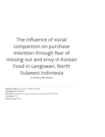 Text (The influence of social comparison on purchase intention through fear of missing out and envy in Korean Food in Langowan, North Sulawesi Indonesia)