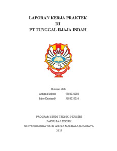 Nickson, Ardion and Krishna, Mico (2025) Laporan kerja praktek di PT Tunggal Djaja Indah. Project Report (PKL, PKIPP, Magang D3, Praktik Kerja Profesi Apoteker, Profesi Guru, Profesi Ners dan Profesi Insiyur). Faculty of Engineering, Surabaya. (Submitted)