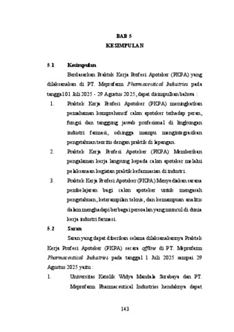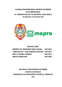 Gerrits, Frisca Monika, Bhagaskara, Benedictus Theoderix, Baleare, Christianty Stevani Margaretha and Fernanda, Meyvia (2025) Laporan Praktek Kerja Profesi Apoteker di PT Meprofarm Jl. Soekarno Hatta 789 Bandung, Jawa Barat 01 Juli 2025-29 Agustus 2025. Project Report (PKL, PKIPP, Magang D3, Praktik Kerja Profesi Apoteker, Profesi Guru, Profesi Ners dan Profesi Insiyur). Faculty of Pharmacy, Surabaya, Indonesia. (Submitted)