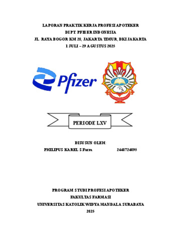 Laporan Praktik Kerja Profesi Apoteker di PT. Pfizer Indonesia Jl. Raya Bogor Km 28, Jakarta Timur, DKI Jakarta 1 Juli - 29 Agustus 2025.