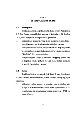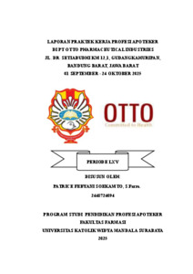 Soekamto, Patrice Febyani (2025) Laporan Praktek Kerja Profesi Apoteker di PT Otto Pharmaceutical Industries Jl. Dr. Setiabudhi KM 12,1, Gudangkahuripan, Bandung Barat, Jawa Barat 01 September 2025 - 24 Oktober 2025. Project Report (PKL, PKIPP, Magang D3, Praktik Kerja Profesi Apoteker, Profesi Guru, Profesi Ners dan Profesi Insiyur). Faculty of Pharmacy, Surabaya, Indonesia. (Submitted)