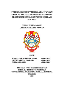 Putri, Joycelyne Adrielle, Pratama, Chyntia Putri and Zahra, Fatimah (2026) Perencanaan unit pengolahan pangan kefir nanas "K'ELIX" dengan kapasitas produksi 50 botol dan pouch (@200 mL) per hari. Technical Report (Perencanaan Unit Pengolahan Pangan (FTP), Makalah Komprehensif (FTP)). Faculty of Agricultural Technology, Surabaya. (Submitted)