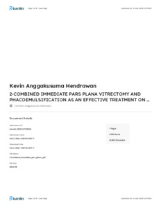 Hendrawan, Kevin Anggakusuma, Andayani, Ari, Siska, Siska, Lapu, Ervan Suryanti Umbu and Yudistira, Yudistira (2025) Combined Immediate Pars Plana Vitrectomy and Phacoemulsification as an Effective Treatment on Macula-off Rhegmatogenous Retinal Detachment. International Journal of Retina, 8 (1). pp. 50-56. ISSN pISSN: 2614-8684, eISSN: 2614-8536