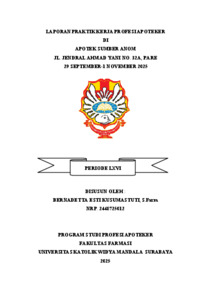 Kusumastuti, Bernadetta Esti (2026) Laporan Praktik Kerja Profesi Apoteker di Apotek Sumber Anom Jl. Jendral Ahmad Yani No. 32A, Pare 29 September – 1 November 2025. Project Report (PKL, PKIPP, Magang D3, Praktik Kerja Profesi Apoteker, Profesi Guru, Profesi Ners dan Profesi Insiyur). Faculty of Pharmacy, Surabaya, Indonesia. (Submitted)