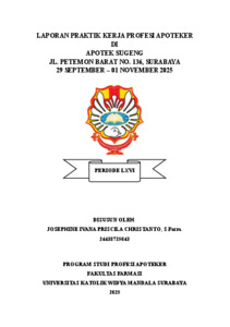 Christanto, Josephine Ivana Priscila (2026) Laporan praktik kerja profesi apoteker di Apotek Sugeng Jl. Petemon Barat No.136, Surabaya 29 September-01 November 2025. Project Report (PKL, PKIPP, Magang D3, Praktik Kerja Profesi Apoteker, Profesi Guru, Profesi Ners dan Profesi Insiyur). Faculty of Pharmacy, Surabaya. (Submitted)