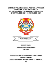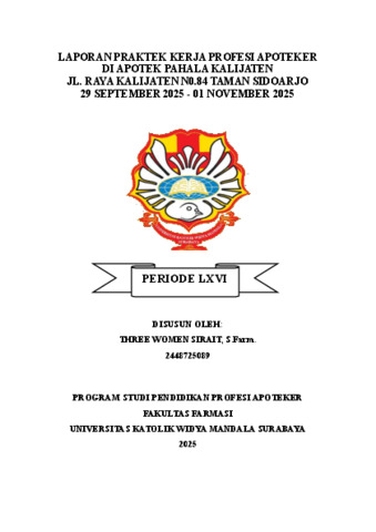 Sirait, Three Women (2026) Laporan praktek kerja profesi Apoteker di Apotek Pahala Kalijaten Jl. Raya Kalijaten no.84 Taman Sidoarjo 29 September 2025-01 November 2025. Project Report (PKL, PKIPP, Magang D3, Praktik Kerja Profesi Apoteker, Profesi Guru, Profesi Ners dan Profesi Insiyur). Faculty of Pharmacy, Surabaya, Indonesia. (Submitted)