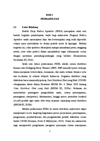 Attawuwuwur, Adelia Natasya, Haq, Afyq Zhiya'Ul, Gesang, Agatha Findhes Ringgayuh, Benimaking, Agustina Selia, Rohmah, Ainur, Navita, Amanda, Rinaldo, Amelia Jesslyn, Adilah, Amirah Nur, Lucia, Angelica, Laveindra, Angelica P., Wulaningrum, Aradea Cahya, Kusumastuti, Bernadetta Esti, Riyanto, Catherina Theresia Pongsapan, Meo, Christana Theves, Irawan, Christine Vivien, Sihotang, Dea Excel Siska, Tulimau, Detika Aksamina Jumina, Simbolon, Devitaria Fiorenika, Ramadhani, Diana Putri, Bintang, Donna Audy, Hasian, Dwi Anna, Rusiana, Erliza Ratu, Silitonga, Ester Glory Angelique Br., Siagian, Ester Natalia Dorti, Banfatin, Etni Julita Berlinmas, Muthalib, Fadillah, Angelina, Faradila, Salsabila, Fiana Kurnia, Sapakoly, Florentina Deani, Ningrum, Fransiska Natasya Prasetiya, Wiratamadharma, Gading, Suhandri, Gracelia, Parinding, Guy Bernadeth, Saputri, Hestika Prianda, Mahendra, I Putu Gede Erwin Adi, Sambekok, Ignatius Pratama, Yulia, Ika Widartati Lisa, Ningsih, Indri Gusti, Tamarawati, Inka Ayu, Pangaribuan, Intan Melani, Obe, Irene Maria Regolinda, Ruha, Jessica Defloresta Alo, Christanto, Josephine Ivana Priscila, Putri, Kadek Galih Maharani Arya, Korsini, Kasilda Andria, Hermawan, Kesia Puji Kristiani, Himawan, Lavernne Vannya, Nababan, Lidya Vernanda, Ameng, Maria Anastasia Kamelia, Irawan, Maria Florentina, Hayon, Maria Gabriela Dua, Sukamto, Maria Gabriela, Liwu, Maria Hendrika, Mego, Maria Junita, Nareswari, Maria Kartika Putri, Dhema, Maria Magdalena Tawa, Hapan, Maria Novalia Claudia, Firdaus, Maryline Angelvin, Guru, Mayrilla Ira S. Ina Kia, Tiandreas, Meilani Kezia, Mosa, Melfelin Rambu, Raja, Mey Lani Adithia Lumban, Gracia, Michaelin, Henrikus, Michelle Angelina, Mirnawati, Mirnawati, Salsabila, Nabila, Nurabdillah, Nadia Puteri, Hesi, Nadisa Lovana, Mukhida, Namira Putri, Halim, Natasya Liviani, Sinarini, Ni Komang, Felicia, Ni Made Deandra, Arthana, Ni Putu Mia Ayuk, Listyadewi, Ni Putu Ririn, Wahyuningsih, Nonik Tri, Kalistus L., Octavianus, Manurung, Olivia Nimas Setya, Putri, Patricia Claudia Ika Permana, Maulidya, Raissa, Rentika, Reza Triwira, Nofitasari, Risma Septyana, Sutomo, Rosamary Chintya, Ambarsari, Sabilla Bening, Yong, Sebastian, Mustopa, Silvia, Devi, Silviana, Rahmawati, Sindhi Aulia, Arissaputri, Theresia Cintya, Sirait, Three Women, Sagita, Vinanda Dewi, Trivia, Vyo Putri, Daunpadang, Yeremia Meis, Mbu, Yesualda Alwinda, Mangampang, Yosefita and Wardani, Yunan Nissa Pramudha (2025) Laporan Praktik Kerja Profesi Apoteker di bidang sarana distribusi 15-27 September 2025. Project Report (PKL, PKIPP, Magang D3, Praktik Kerja Profesi Apoteker, Profesi Guru, Profesi Ners dan Profesi Insiyur). Faculty of Pharmacy, Surabaya. (Submitted)