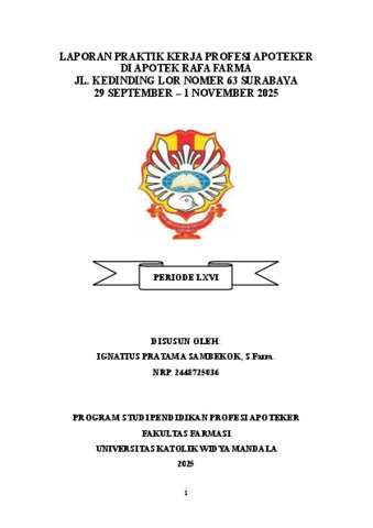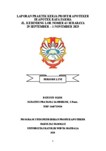 Sambekok, Ignatius Pratama (2025) Laporan Praktik Kerja Profesi Apoteker Di Apotek Rafa Farma Jl.Kedinding Lor Nomer 63 Surabaya 29 September – 1 November 2025. Project Report (PKL, PKIPP, Magang D3, Praktik Kerja Profesi Apoteker, Profesi Guru, Profesi Ners dan Profesi Insiyur). Faculty of Pharmacy. (Submitted)