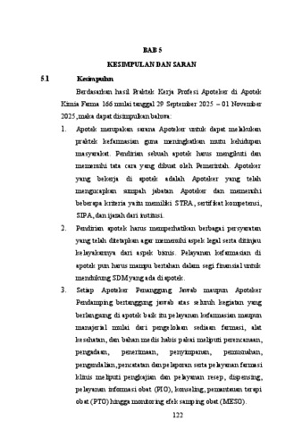 Devi, Silviana (2025) Laporan praktek kerja profesi apoteker di Apotek Kimia Farma 166 Jl. Ahmad Yani No. 228 Surabaya 29 September 2025–01 November 2025. Project Report (PKL, PKIPP, Magang D3, Praktik Kerja Profesi Apoteker, Profesi Guru, Profesi Ners dan Profesi Insiyur). Faculty of Pharmacy, Surabaya. (Submitted)