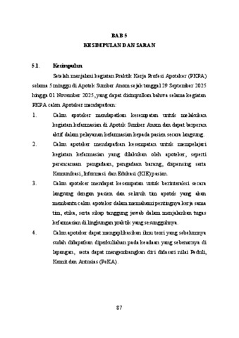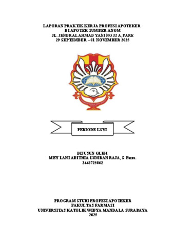 Lumban Raja, Mey Lani Adithia (2025) Laporan praktik kerja profesi apoteker di Apotek Sumber Anom Jl. Jendral Ahmad Yani No. 32 A, Pare 29 September-01 November 2025. Project Report (PKL, PKIPP, Magang D3, Praktik Kerja Profesi Apoteker, Profesi Guru, Profesi Ners dan Profesi Insiyur). Faculty of Pharmacy, Surabaya. (Submitted)