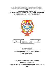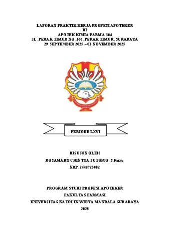 Sutomo, Rosamary Chintya (2026) Laporan Praktik Kerja Profesi Apoteker di Apotek Kimia Farma 304 Jl. Perak Timur No. 166, Surabaya 29 September - 01 November 2025. Project Report (PKL, PKIPP, Magang D3, Praktik Kerja Profesi Apoteker, Profesi Guru, Profesi Ners dan Profesi Insiyur). Faculty of Pharmacy, Widya Mandala Surabaya Catholic University. (Submitted)