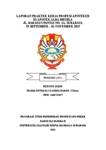 Hapan, Maria Novalia Claudia (2026) Laporan praktek kerja profesi apoteker di Apotek Alba Medika Jl. Babatan Pantai No. 1A, Surabaya 29 September-01 November 2025. Project Report (PKL, PKIPP, Magang D3, Praktik Kerja Profesi Apoteker, Profesi Guru, Profesi Ners dan Profesi Insiyur). Faculty of Pharmacy, Surabaya. (Submitted)