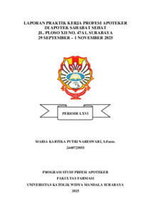 Nareswari, Maria Kartika Putri (2025) Laporan Praktik Kerja Profesi Apoteker di Apotek Sahabat Sehat Jl. Ploso XII NO. 47A1, Surabaya 29 September - 1 November 2025. Project Report (PKL, PKIPP, Magang D3, Praktik Kerja Profesi Apoteker, Profesi Guru, Profesi Ners dan Profesi Insiyur). Faculty of Pharmacy, Surabaya. (Submitted)