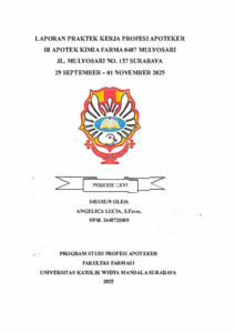 Lucia, Angelica (2025) Laporan praktek kerja profesi apoteker di Apotek Kimia Farma 0407 Mulyosari Jl. Mulyosari No.157 Surabaya 29 September-01 November 2025. Project Report (PKL, PKIPP, Magang D3, Praktik Kerja Profesi Apoteker, Profesi Guru, Profesi Ners dan Profesi Insiyur). Faculty of Pharmacy, Surabaya. (Submitted)