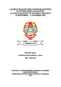 Mangampang, Yosefita (2025) Laporan praktik kerja profesi apoteker di Apotek Pahala Kalijaten Jl. Raya Kalijaten No. 84 Taman, Sidoarjo 29 September-1 November 2025. Project Report (PKL, PKIPP, Magang D3, Praktik Kerja Profesi Apoteker, Profesi Guru, Profesi Ners dan Profesi Insiyur). Faculty of Pharmacy, Surabaya. (Submitted)