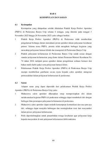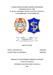Bintang, Donna Audy and Wiratamadharma, Gading (2025) Laporan praktek kerja profesi Apoteker di Puskesmas Banyu Urip Jl. Banyu Urip Kidul VI/8, Kec Sawahan, Surabaya 3 November 2025 - 29 November 2025. Project Report (PKL, PKIPP, Magang D3, Praktik Kerja Profesi Apoteker, Profesi Guru, Profesi Ners dan Profesi Insiyur). Faculty of Pharmacy, Surabaya, Indonesia. (Submitted)