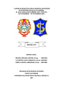 Himawan, Lavernne Vannya, Saputri, Hestika Prianda and Ambarsari, Sabilla Bening (2025) Laporan praktik kerja profesi apoteker di Puskesmas Balas Klumprik Jl. Raya Balas Klumprik, Kec Wiyung 03 November-29 November 2025. Project Report (PKL, PKIPP, Magang D3, Praktik Kerja Profesi Apoteker, Profesi Guru, Profesi Ners dan Profesi Insiyur). Faculty of Pharmacy, Surabaya. (Submitted)