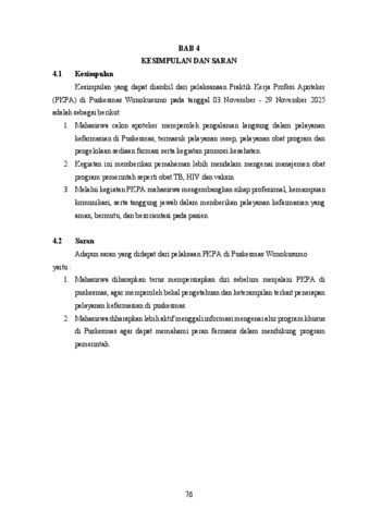 Wulaningrum, Aradea Cahya, Felicia, Ni Made Deandra and Sagita, Vinanda Dewi (2025) Laporan praktik kerja profesi apoteker di Puskesmas Wonokusumo Jl. Wonokusumo Tengah No.55, Wonokusumo, Kec. Semampir, Surabaya 3-29 November 2025. Project Report (PKL, PKIPP, Magang D3, Praktik Kerja Profesi Apoteker, Profesi Guru, Profesi Ners dan Profesi Insiyur). Faculty of Pharmacy, Surabaya. (Submitted)