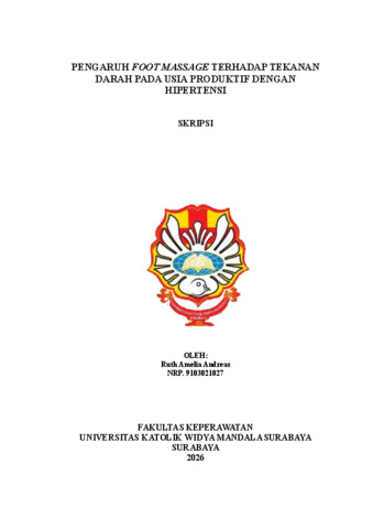 Andreas, Ruth Amelia (2026) Pengaruh foot massage terhadap tekanan darah pada usia produktif dengan hipertensi. Undergraduate thesis, Widya Mandala Surabaya Catholic University.