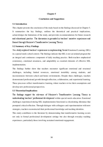 This study investigates teachers’ professional knowledge and experiences in implementing Social-Emotional Learning (SEL) in a special needs school (Sekolah Luar Biasa) in Indonesia. Grounded in a qualitative research design, the study examines how two special needs teachers understand, enact, and reflect on SEL in their daily teaching practices. One teacher works with students with mixed intellectual and behavioral challenges, while the other teaches deaf students. Data were collected through semi-structured interviews and analyzed using thematic analysis following Braun and Clarke’s six-phase framework, with Mezirow’s Transformative Learning Theory serving as an analytical lens. The findings indicate that teachers perceive SEL not as an additional program but as an essential foundation for learning and classroom management in special education contexts. Teachers described multiple challenges in implementing SEL, including limited institutional resources, lack of formal SEL training, inconsistent parental involvement, and sustained emotional demands. These challenges required teachers to engage in significant emotional labor as they continuously managed students’ emotional needs, behavioral difficulties, and their own emotional regulation. To address these challenges, teachers employed adaptive strategies such as improvising instructional approaches, fostering collaboration with colleagues, and engaging in ongoing self-reflection. The study further reveals that these reflective and adaptive practices align with key elements of transformative learning, particularly critical reflection, reassessment of professional assumptions, and gradual changes in professional identity. The study concludes that SEL implementation in special needs education facilitates a dual transformative process: supporting students’ emotional development while reshaping teachers’ professional understanding and emotional capacities. The findings highlight the importance of structured SEL training, institutional support, and policy integration to strengthen SEL practices within Indonesia’s special education system. Keywords: teachers’ professional knowledge, social-emotional learning, emotional labor, special needs schools, thematic analysis, transformative learning