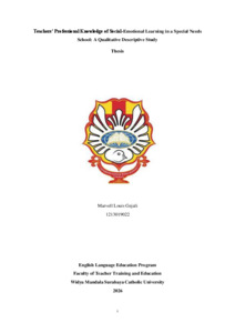 Gejali, Marvell Louis (2026) Teachers’ professional knowledge of social-emotional learning in a special needs school : a qualitative descriptive study. Undergraduate thesis, Widya Mandala Surabaya Catholic University.