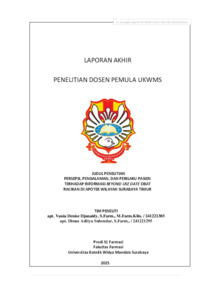 Persepsi, Pengalaman, dan Perilaku Pasien Terhadap Informasi Beyond Use Date Obat Racikan di Apotek Wilayah Surabaya Timur.