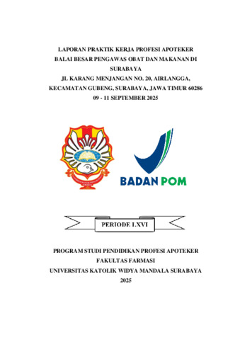 Attawuwur, Adelia Natasya, Haq, Afyq Zhiya'Ul, Gesang, Agatha Findhes Ringgayuh, Benimaking, Agustina Selia, Rohmah, Ainur, Navita, Amanda, Rinaldo, Amelia Jesslyn, Adilah, Amirah Nur, Lucia, Angelica, Laveindra, Angelica P., Wulaningrum, Aradea Cahya, Kusumastuti, Bernadetta Esti, Riyanto, Catherina Theresia Pongsapan, Meo, Christana Theves, Irawan, Christine Vivien, Sihotang, Dea Excel Siska, Tulimau, Detika Aksamina Jumina, Simbolon, Devitaria Fiorenika, Ramadhani, Diana Putri, Bintang, Donna Audy, Hasian, Dwi Anna, Rusiana, Erliza Ratu, Silitonga, Ester Glory Angelique Br., Siagian, Ester Natalia Dorti, Banfatin, Etni Julita Berlinmas, Muthalib, Fadillah, Angelina, Faradila, Salsabila, Fiana Kurnia, Sapakoly, Florentina Deani, Ningrum, Fransiska Natasya Prasetiya, Wiratamadharma, Gading, Suhandri, Gracelia, Parinding, Guy Bernadeth, Saputri, Hestika Prianda, Mahendra, I Putu Gede Erwin Adi, Sambekok, Ignatius Pratama, Yulia, Ika Widartati Lisa, Ningsih, Indri Gusti, Tamarawati, Inka Ayu, Pangaribuan, Intan Melani, Obe, Irene Maria Regolinda, Ruha, Jessica Defloresta Alo, Christanto, Josephine Ivana Priscila, Putri, Kadek Galih Maharani Arya, Korsini, Kasilda Andria, Hermawan, Kesia Puji Kristiani, Himawan, Lavernne Vannya, Nababan, Lidya Vernanda, Ameng, Maria Anastasia Kamelia, Irawan, Maria Florentina, Hayon, Maria Gabriela Dua, Sukamto, Maria Gabriela, Liwu, Maria Hendrika, Mego, Maria Junita, Nareswari, Maria Kartika Putri, Dhema, Maria Magdalena Tawa, Hapan, Maria Novalia Claudia, Firdaus, Maryline Angelvin, Guru, Mayrilla Ira S. Ina Kia, Tiandreas, Meilani Kezia, Mosa, Melfelin Rambu, Raja, Mey Lani Adithia Lumban, Gracia, Michaelin, Henrikus, Michelle Angelina, Mirnawati, Mirnawati, Salsabila, Nabila, Nurabdillah, Nadia Puteri, Hesi, Nadisa Lovana, Mukhida, Namira Putri, Halim, Natasya Liviani, Sinarini, Ni Komang, Felicia, Ni Made Deandra, Arthana, Ni Putu Mia Ayuk, Listyadewi, Ni Putu Ririn, Wahyuningsih, Nonik Tri, Octavianus Kalistus L., ., Manurung, Olivia Nimas Setya, Putri, Patricia Claudia Ika Permana, Maulidya, Raissa, Rentika, Reza Triwira, Nofitasari, Risma Septyana, Sutomo, Rosamary Chintya, Ambarsari, Sabilla Bening, Yong, Sebastian, Mustopa, Silvia, Devi, Silviana, Rahmawati, Sindhi Aulia, Arissaputri, Theresia Cintya, Sirait, Three Women, Sagita, Vinanda Dewi, Trivia, Vyo Putri, Daunpadang, Yeremia Meis, Mbu, Yesualda Alwinda, Mangampang, Yosefita and Wardani, Yunan Nissa Pramudha (2025) Laporan praktik kerja profesi apoteker di bidang Pemerintahan Balai Besar Pengawas Obat dan Makanan di Surabaya Jl. Karang Menjangan No. 20, Airlangga, Kecamatan Gubeng, Surabaya, 09-11 September 2025. Project Report (PKL, PKIPP, Magang D3, Praktik Kerja Profesi Apoteker, Profesi Guru, Profesi Ners dan Profesi Insiyur). Faculty of Pharmacy, Surabaya. (Submitted)