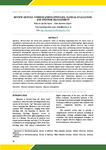 Sujana, Widia Isa Aprillia and Wijaya, Julian Hartawan (2026) Review Article: Understanding Epistaxis, Clinical Evaluation, And Stepwise Management. Journal of Widya Medika Junior, 8 (1). pp. 56-65. ISSN 26561409