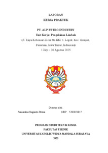 Patma, Fransiskus Sugianto (2026) Laporan kerja praktek PT. ALP Petro Industry unit kerja : pengolahan limbah (Jl. Raya kebonsari Desa No.KM. 1, Legok, Kec.Gempol, Pasuruan, Jawa Timur, Indonesia) 1 Juli-30 Agustus 2025. Project Report (PKL, PKIPP, Magang D3, Praktik Kerja Profesi Apoteker, Profesi Guru, Profesi Ners dan Profesi Insiyur). Faculty of Engineering, Surabaya. (Submitted)